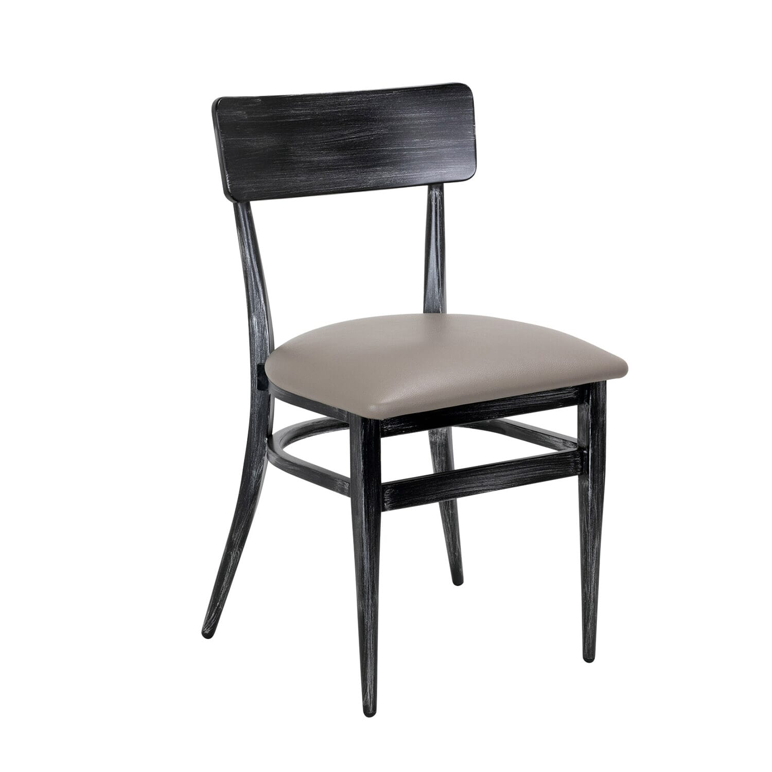 This hip, trendy Antique Gray Commercial Bar Stool offers several seating options. It looks great in cafés, bars, and other food-service settings with an industrial or rustic decor. The bar stool is sold in upholstered, saddle or veneer seating options. Arrives fully assembled!