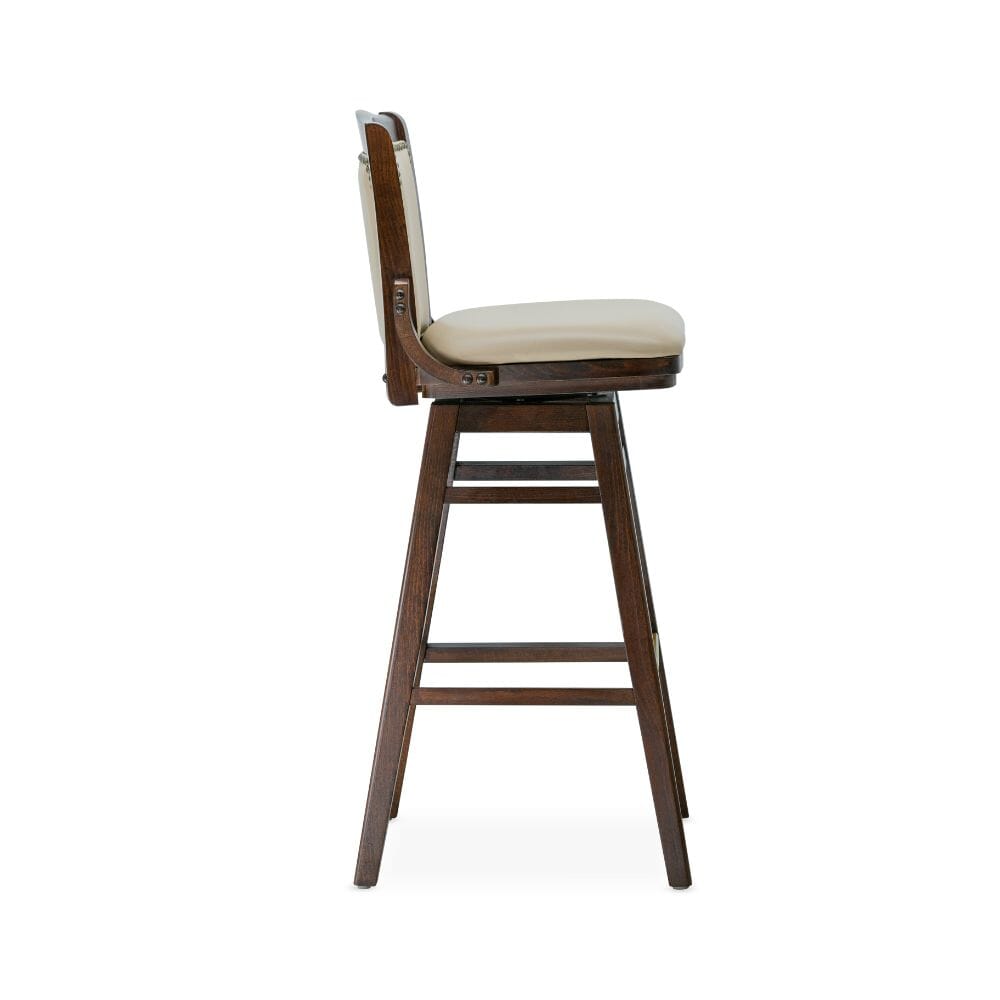 This Fully Upholstered Schoolhouse bar stool has a classic and comfortable style, which is suitable for many types of restaurants and bars. This sturdy bar stool enhances English-style or colonial-style restaurants, but can also add that special touch to any decor. It was handcrafted in Europe out of solid beech wood including your choice of wood or upholstered seating options; finely assembled in the USA with mortise and tenon construction, and metal reinforcements.