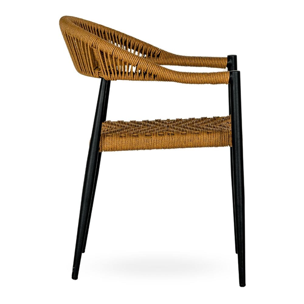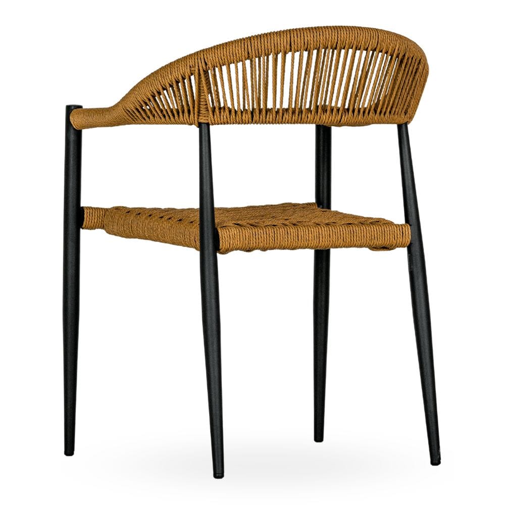 This Stackable indoor/out Chair features a black powdered coated aluminum frame with a rope seat and back. The rope is crafted to create an intricate and visually appealing design while providing maximum durability in high-traffic hospitality settings. Arrives fully assembled!