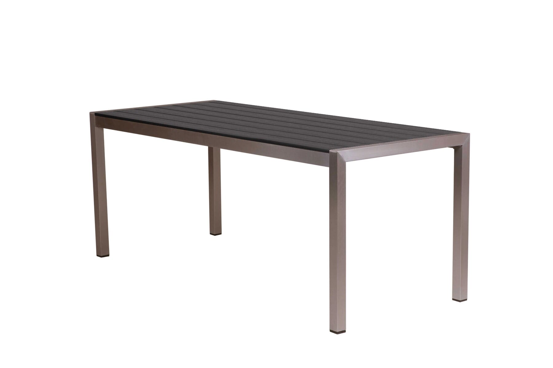 This casual but elegant table is made of a recycled aluminum frame for extra durability and scratch resistance. The table, pictured in Black, is made of synthetic “teak wood” slats from a poly material, designed to look like reclaimed wood — perfect for creating the ambiance of a waterside setting. Hard-wearing and reinforced legs feature nylon-capped feet to protect both your furniture and your floor. This table has a matching bench and requires light assembly.