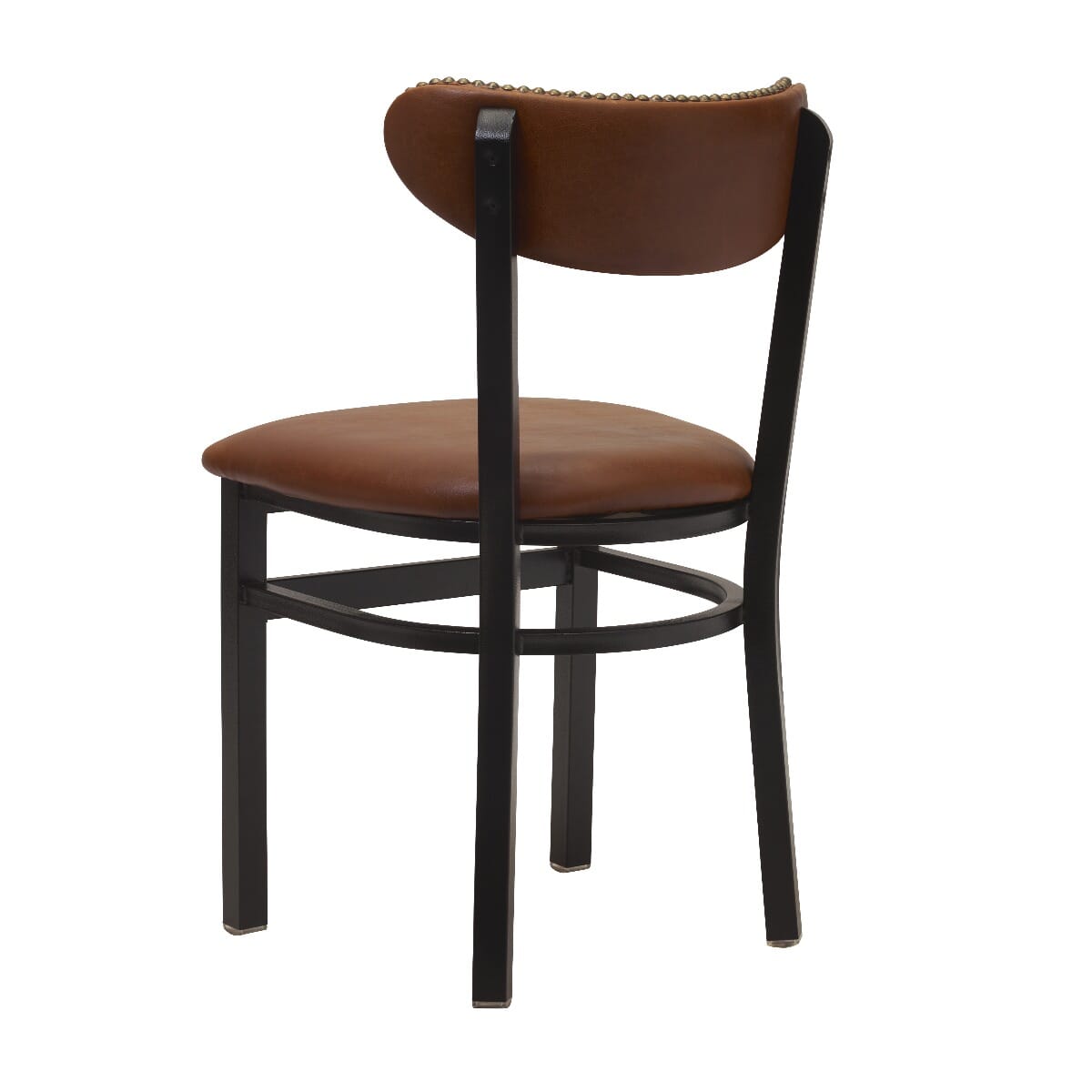 The Upholstered Metal Kidney Restaurant Side Chair with Nailhead Trim is a great looking and sturdy side chair, which is designed especially for restaurants or bars. It is available in black wrinkle frame and upholstered according to your choice of fabric or vinyl seating and back options.