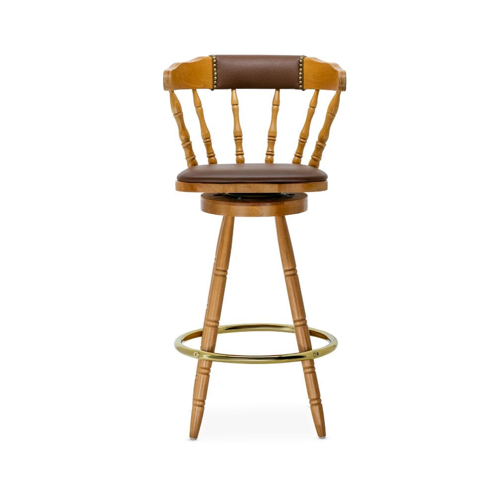 The Captain Mate Restaurant Bar Stool is a colonial-style bar stool, which is ideal for English style restaurants or bars. This bar stool was handcrafted out of solid beech wood, handcrafted in Europe, and finely assembled in the USA with mortise and tenon construction, and metal reinforcements. Available with wood or upholstered seat and back of your choice.