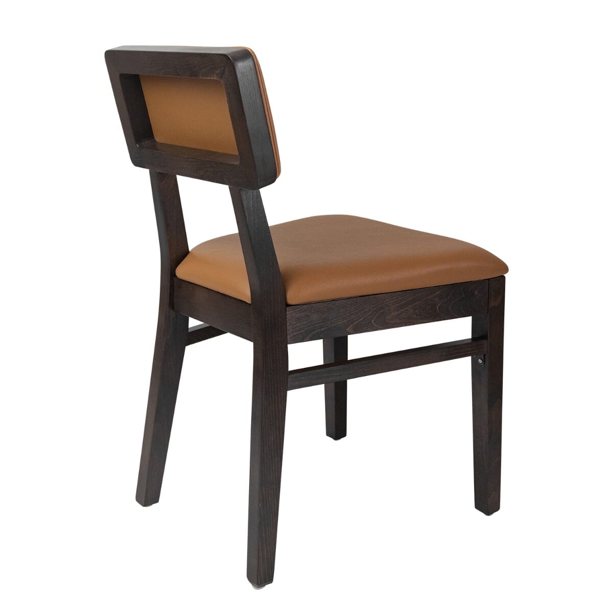 Constructed of top-grade, hand-selected European beechwood in walnut, this chair features a stylish, minimalistic back and is available with custom seating options. The chair features mortise-and-tenon joinery reinforced with metal brackets to ensure it can withstand years of heavy use. Sturdy legs feature feet capped with nylon glides to protect both furniture and floor. Arrives fully assembled.